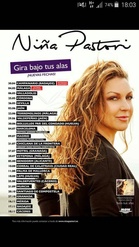 El concierto que se celebrará el 25 de Agosto en el Campo Municipal de Fútbol "El Regajo" de nuestra localidad, con motivo la Feria de San Agustín, será el de la artista Niña Pastori, dentro de la gira "Bajo tus Alas".