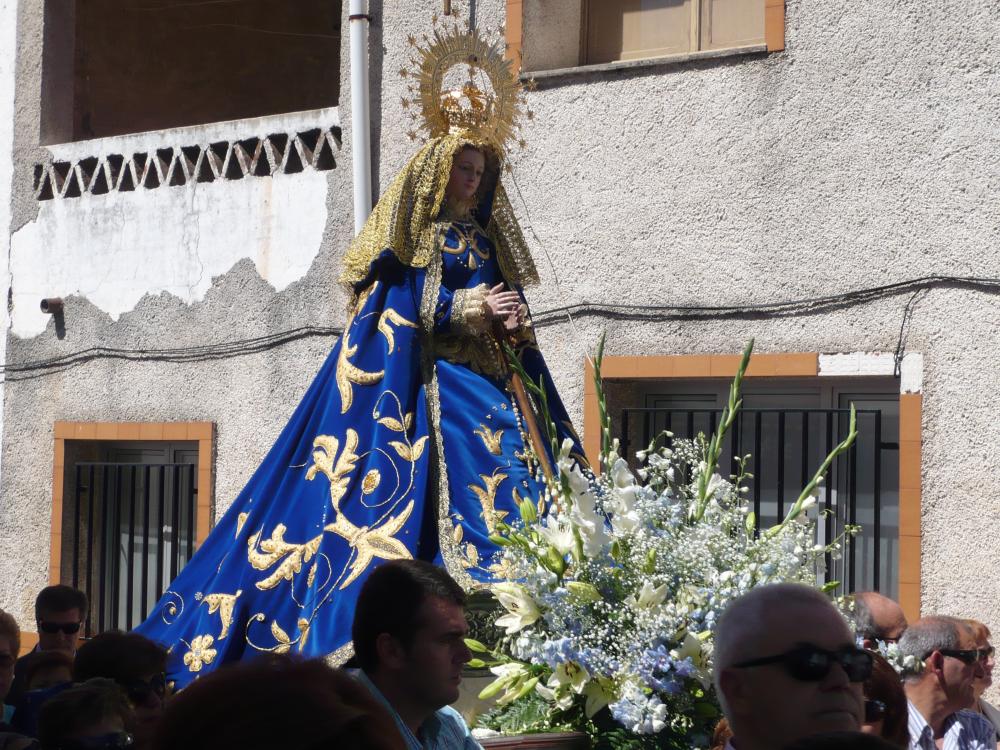 En esta época del año, el pueblo se encuentra repleto de gente que regresa a la localidad para visitar a la Virgen en su fiesta. En este día se saca a la Virgen en procesión siendo acompañada por todo el pueblo. La procesión discurre entre vivas canciones y aplausos a la virgen. Después de la procesión hay misa y por la tarde, viene ya de tradición que se celebre el oportuno ofertorio en el que se subastan toda clase de regalos que los vecinos han ofrecido a la Virgen.