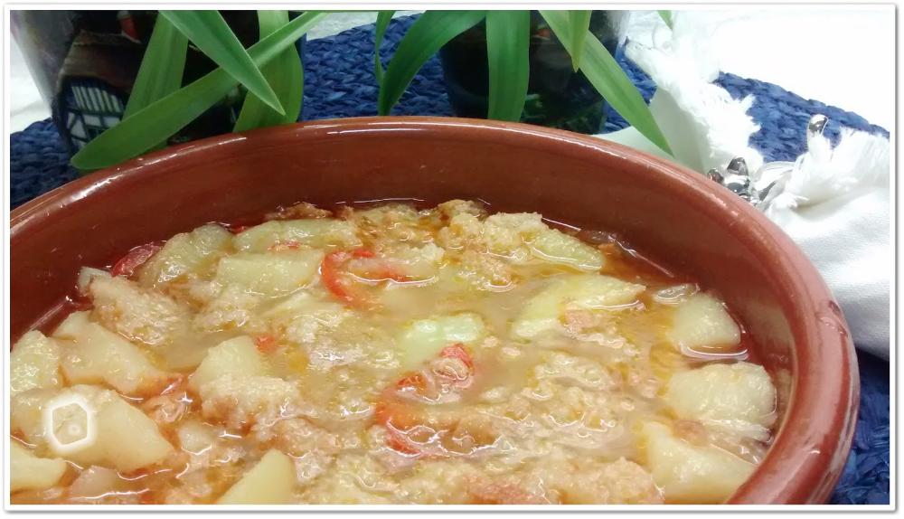 - Sopa de patatas. Con base de patata, pan duro y pimentón.