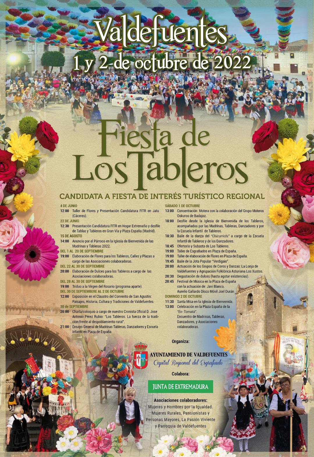 Este año además de poder disfrutar de lo más importante de cuanto acontece en estos días, como es la ilusión de todo un Pueblo volcado para intentar conservar y preservar su Cultura y sus Tradiciones a través de esta ancestral Fiesta, cuyo documento más antiguo que se conserva data de 1879, engalanando nuestras calles y plazas con las más de 3000 flores elaboradas por las Asociaciones colaboradoras (Mujeres y Hombres por la Igualdad, Mujeres Rurales, Pensionistas y Personas Mayores, la Pasión Viviente y la Parroquia); del colorido de los distintos Tableros que desfilarán (incluídos los de la Escuela Infantil de Tableros), del aroma a nuestra Tierra que nos trasladarán las numerosas Personas que irán ataviadas con el Traje Regional (incluídas Madrinas, Tableras y Escuela Infantil), y de nuestros Rituales y Danzas como es el "Chicurrichi"; disfrutaremos también de las numerosas actividades que se desarrollarán durante estos días (Exposiciones, Talleres, Degustación de dulces, Concentración Motera, Actuaciones Musicales, etc.)