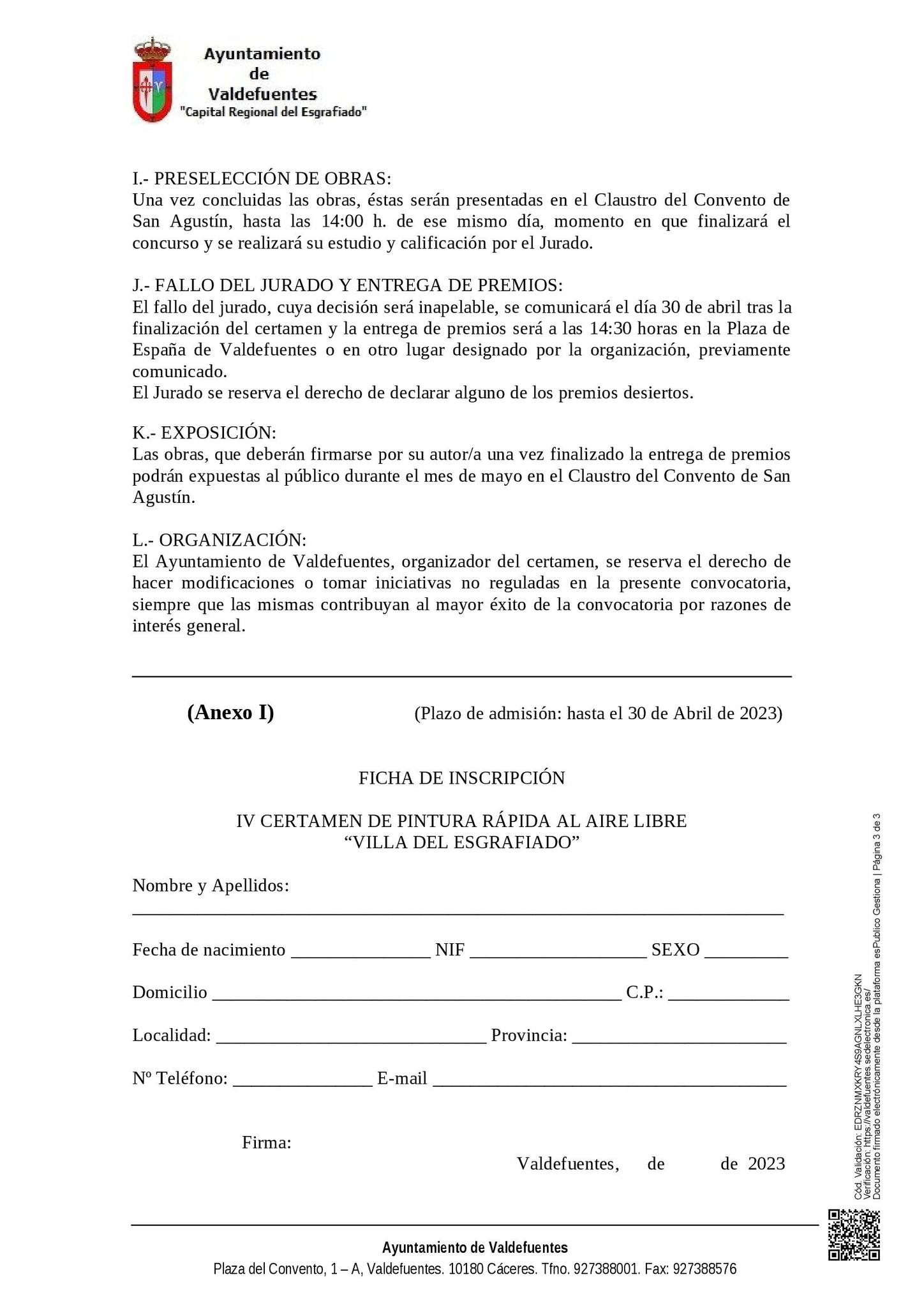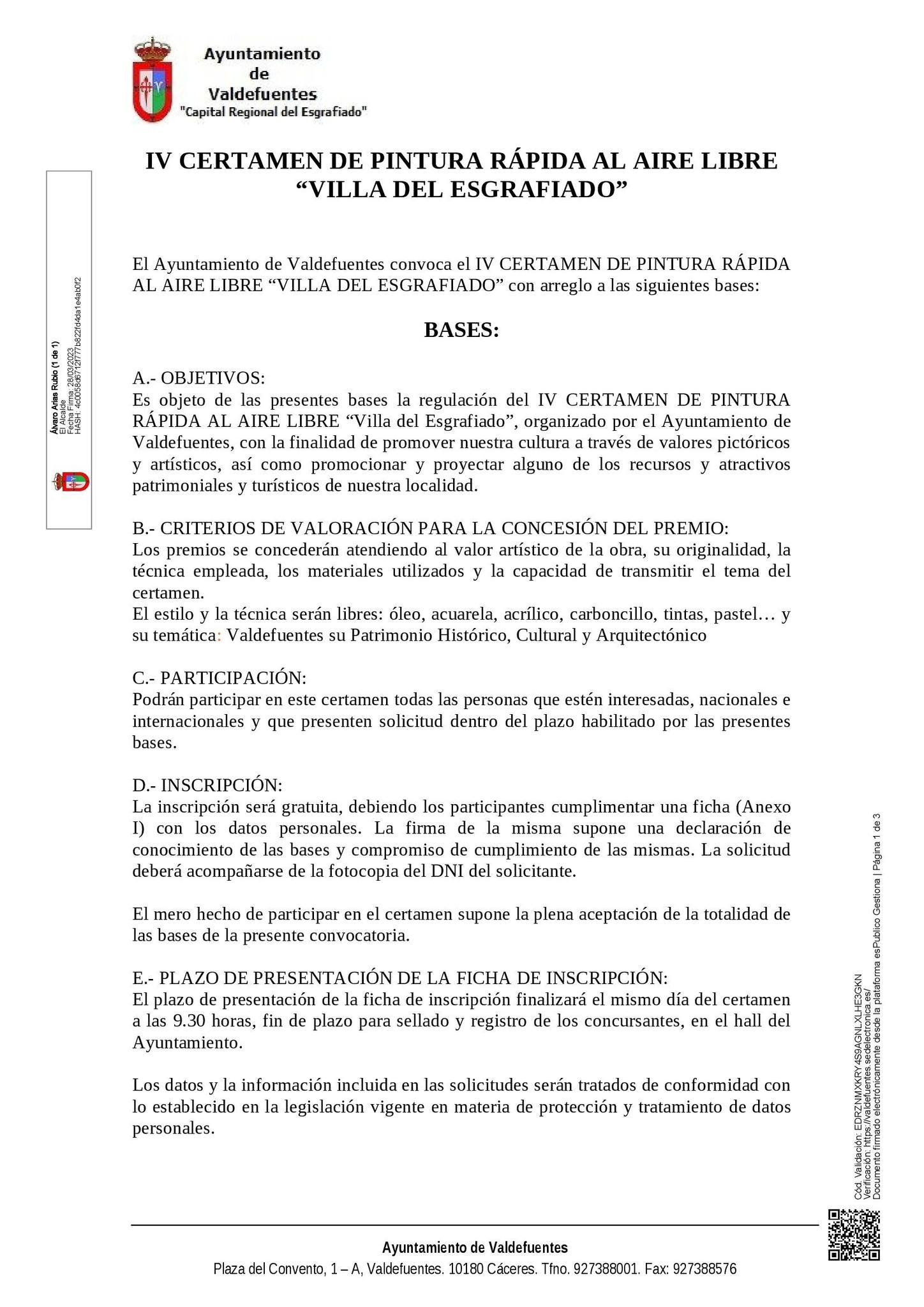 Adjuntamos Cartel y Bases del IV Certamen de Pintura Rápida al Aire Libre "Villa del Esgrafiado"