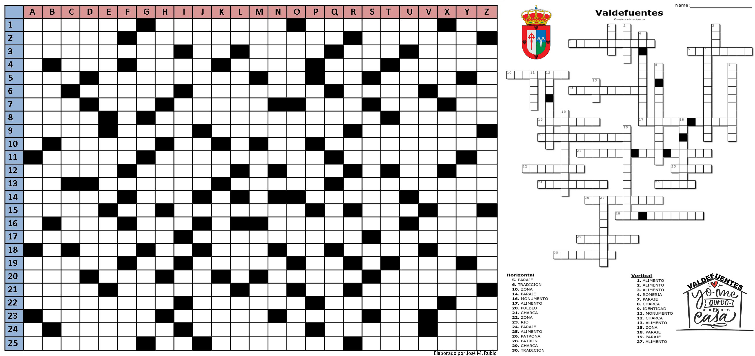 Buenos días, hay dos vecinos, a los que agradecemos su inestimable colaboración, que nos han remitido dos juegos (Crucigrama y Palabras Entrelazadas) para intentar que pasemos de la mejor manera o lo más entretenidos posible esta siutación de confinamiento, además de conocer o recordar parte del patrimonio de nuestra localidad: